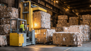Une fois triés, les matériaux recyclables occupent des volumes considérables. Une tonne de bouteilles PET vides représente près de cinquante mètres cubes. Les transporter dans cet état multiplierait les rotations de camions, les coûts logistiques, les émissions de carbone. Le compactage résout ce paradoxe économique.